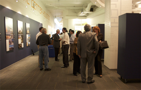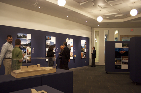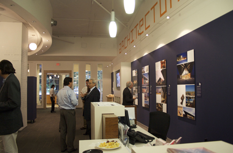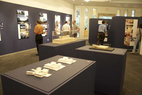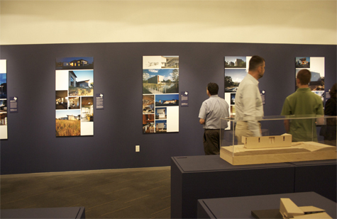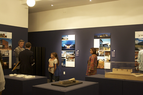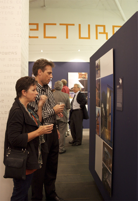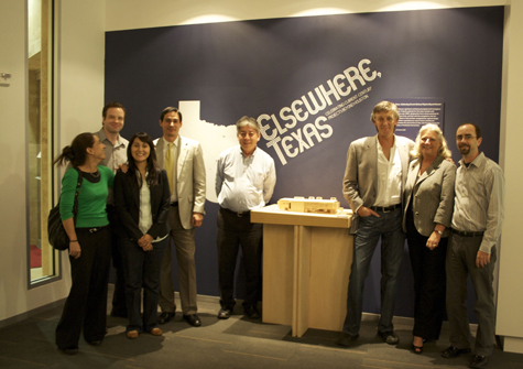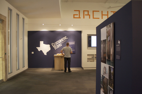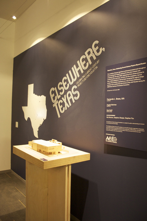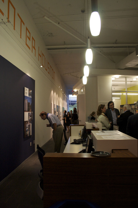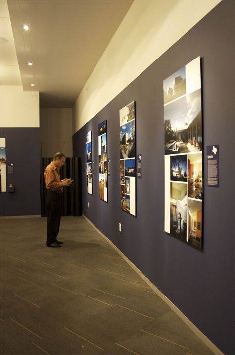 Elsewhere, Texas opened on Wednesday, September 23. The show looked incredible, was well attended and very well received. The comments were particularly flattering. The newly blue painted walls were one of the highlights of the exhibit but could not, and did not intend to, overshadow the collection of 23 fabulous projects. While most of the projects’ authors said they would be here for the second opening, one to coincide with the TSA TAC Mixer on October 22nd, Pat and Cathy Murphy of Morrison Seifert Murphy travelled from Dallas especially for the occasion to see their Legacy Books project on display. Legacy Books is the only Interiors project selected for the show. One of the show’s visitors referred to the exhibit as a great sampling of true “Texas Regional Modernism.”