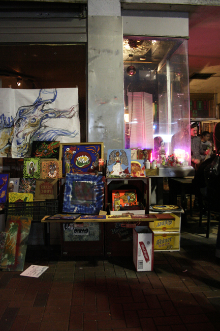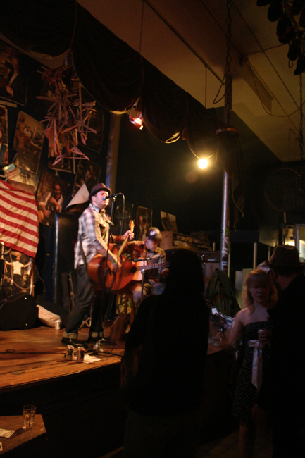 Initiated by an invitation from a friend to go watch their band play, Nick and I made our way out Friday night to notsuoH in downtown Houston. The venue, the original 1930’s Clark’s / Dean’s Credit Clothing storefronts, was a great combination of music, art and vintage architecture. A long and narrow venue (I wouldn’t be surprised to find a place like this somewhere on the East Coast) was filled to the brim with various art work and wonderful little nooks. One area had a chess board for patrons to play, a shoe shiner and even a wall of board games. The best part of the entire evening was the musical stylings of Folk Punk band Jason Bancroft and the Wealthy Beggars (shout out!); their music is such a wonderful combination of instrutmental skills and vocals you will not find anywhere else. From The Wealthy Beggars the music went on to country musician Zachary Diedrick and Days N Daze, who rocked out on a washtub bass, wash board, grungy acoustic guitar and trumpet. One word to describe this particular band live, amazing! Leaving that evening really made me appreciate the bands that are here in the city and the venues that support them. So, go on and enjoy some photos of the night’s events.