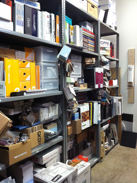 As more materials are being developed today, it leads to more representatives dropping off binders and samples at our office. This then makes the space designated for materials and samples very limited and in need of purging. We have plenty of rubber bases, carpet samples, VCT flooring, laminate samples, glass—a few of the typical items found in an architecture firm.