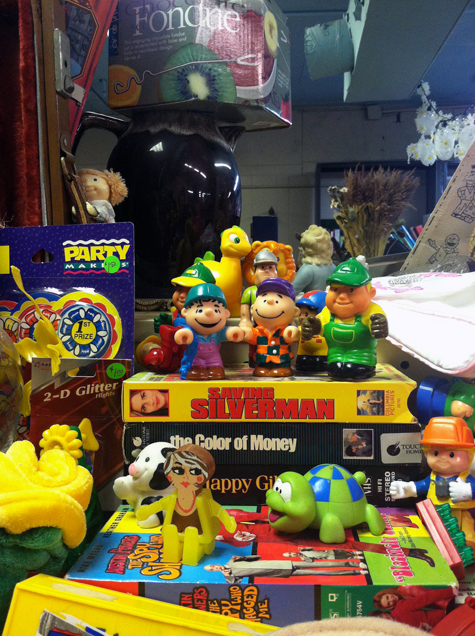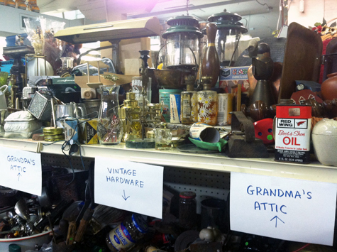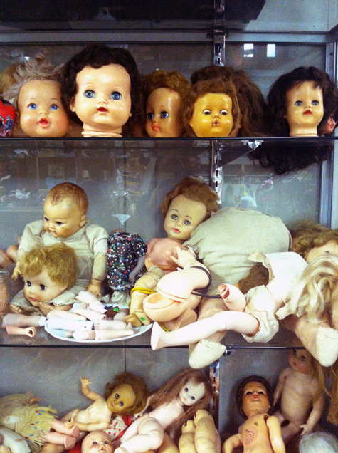 Looking around the store reminds me of my parents/grandparents garage—storage for items they aren’t ready to get rid of like jars, yarn and fabric, hardware, nuts and bolts, seasonal decorations, old toys and even old cigar boxes. You never know when these things will come in handy! Although I will admit that there are some odd items like the doll body parts , but if you’re looking for older materials to use for a new art project, this is a great place to stop by and even find some inspiration!