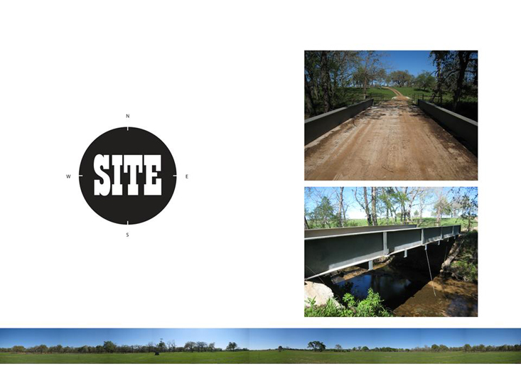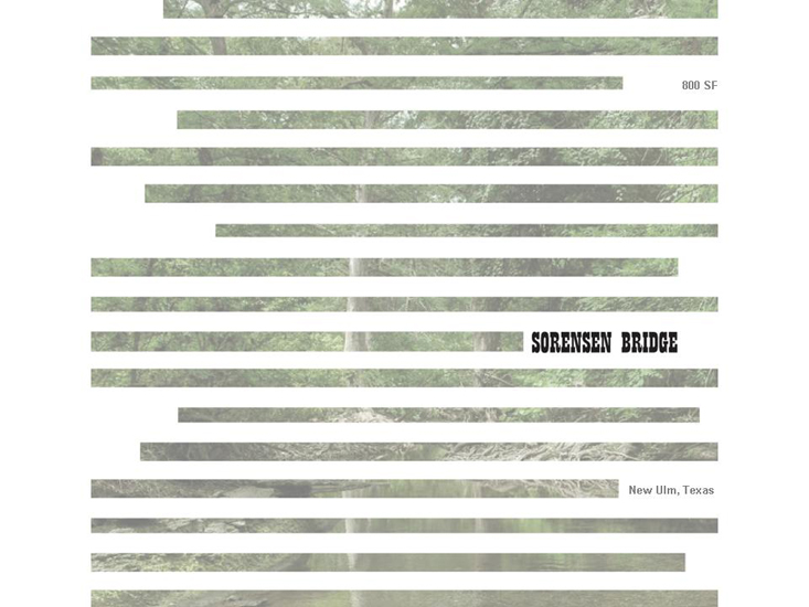 Where the historical covered bridge protected the structure from the elements—this reinterpretation permits the elements to pass through the structure. Located in the Texas Hill Country, the Sorensen Bridge is the addition of a structure to an existing bridge spanning 50 feet across Sandy Creek. The creek divides 220 acres of private property that belongs to an entrepreneur whose business is selling tube steel.